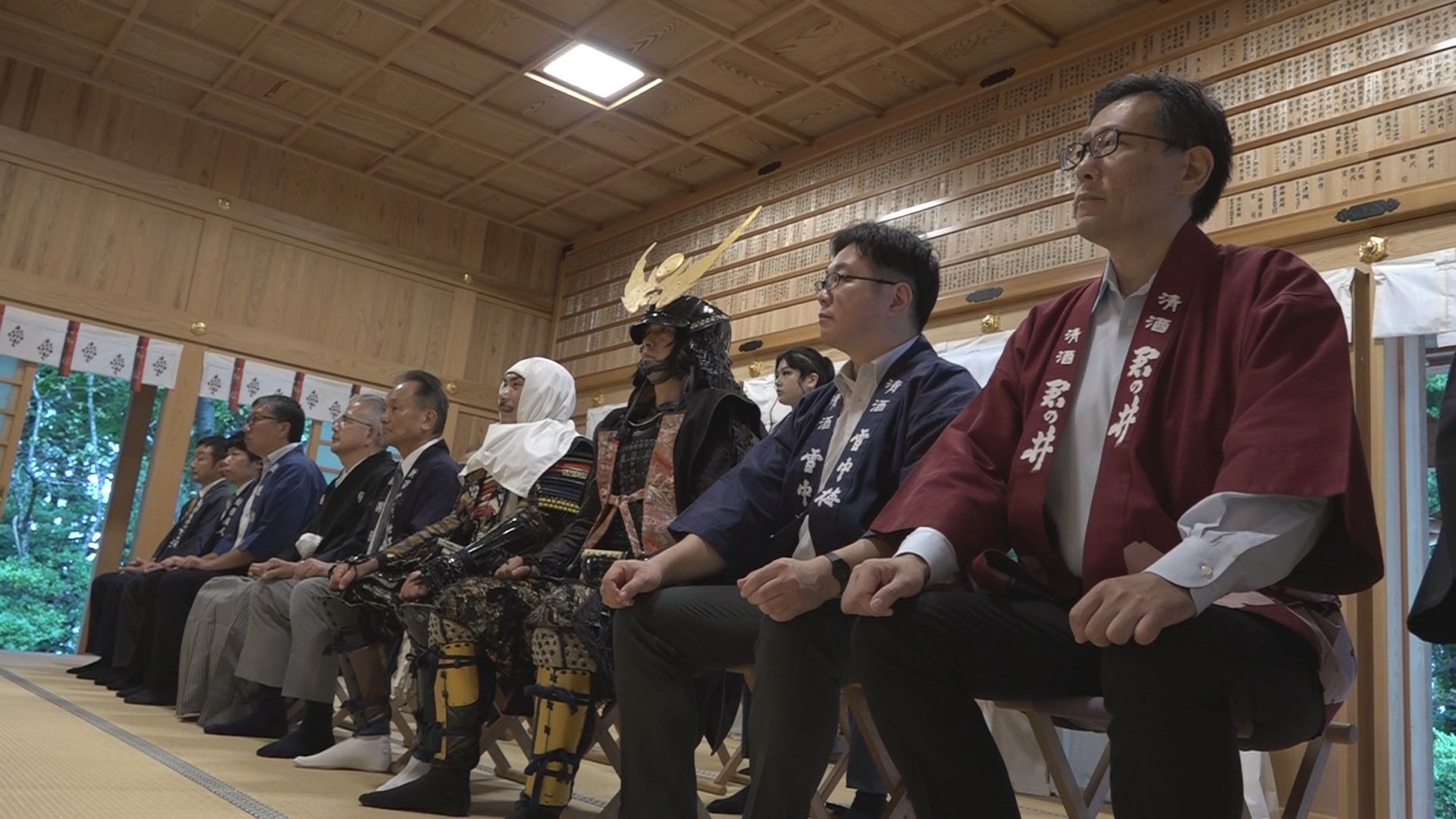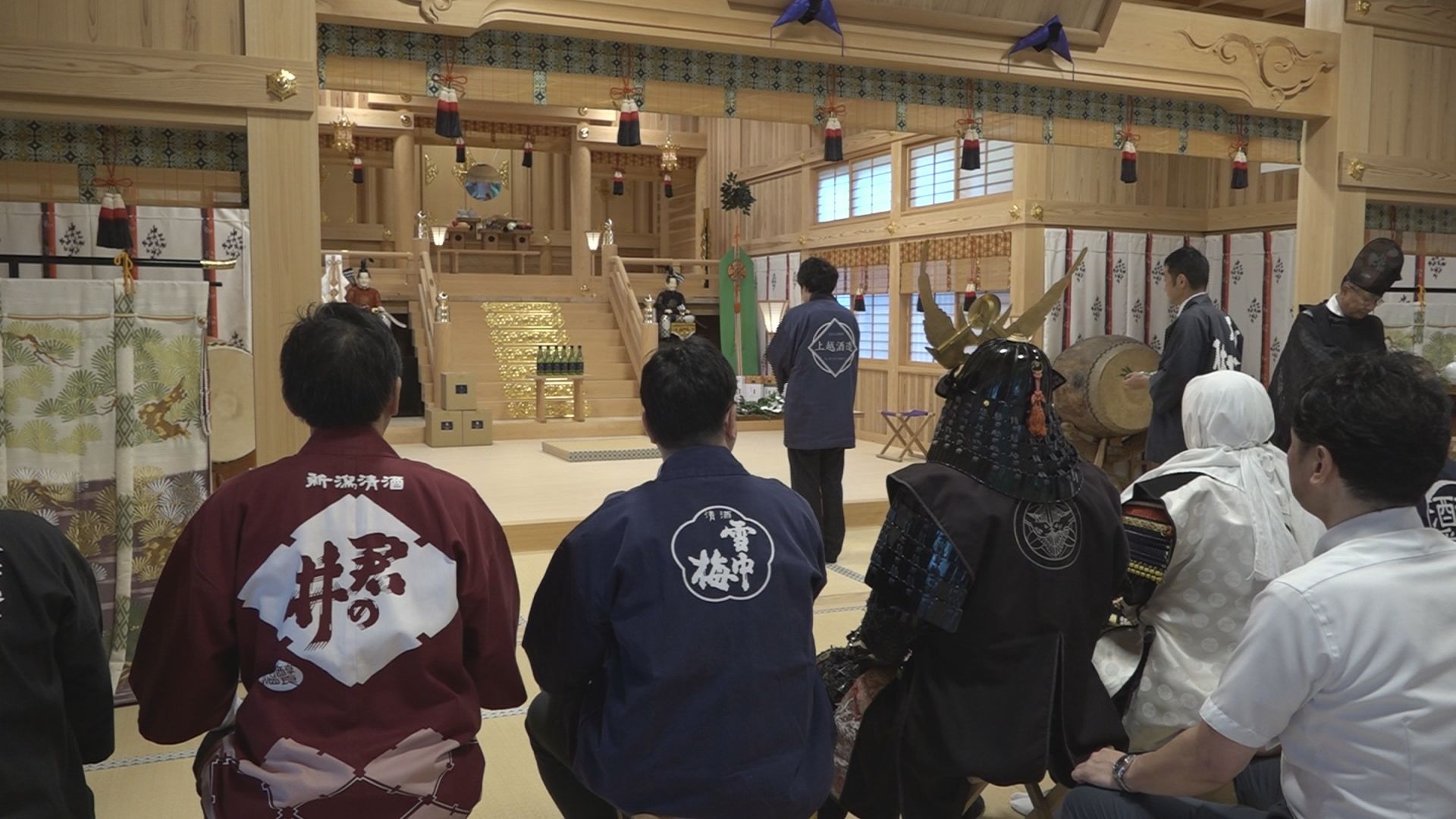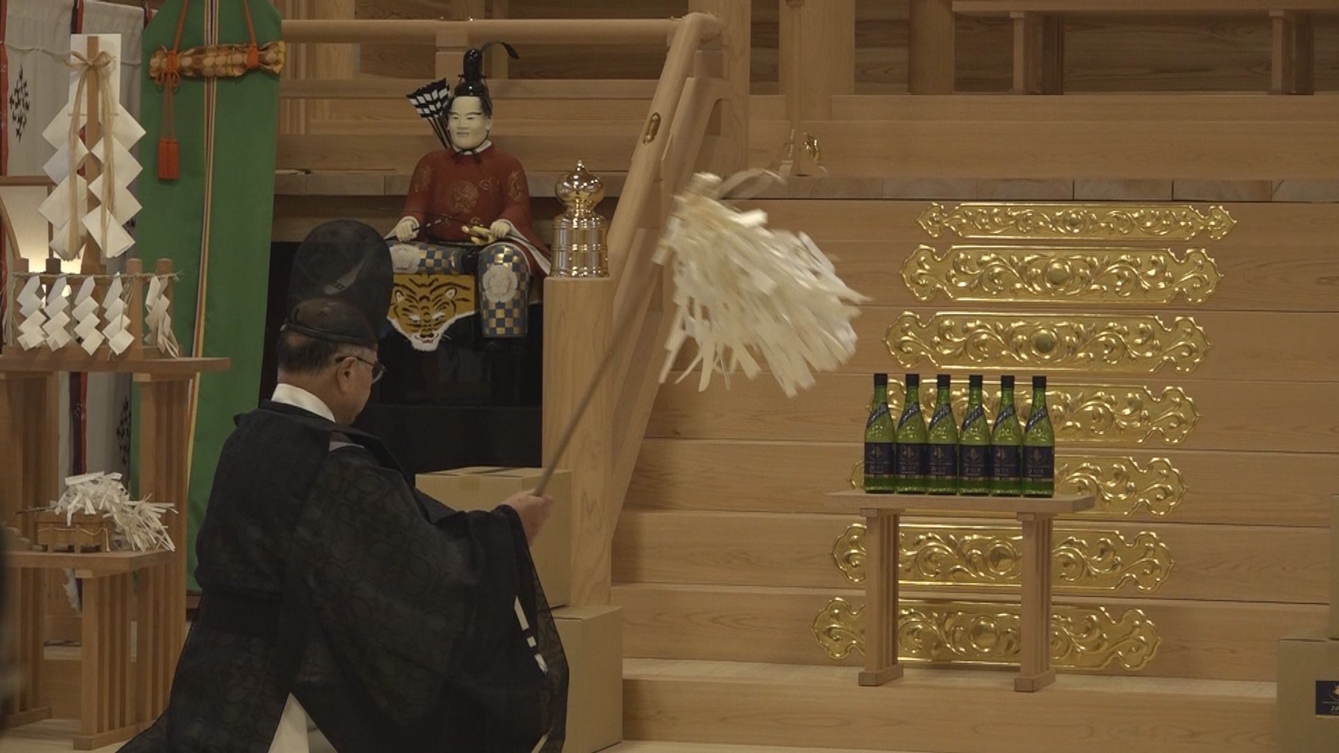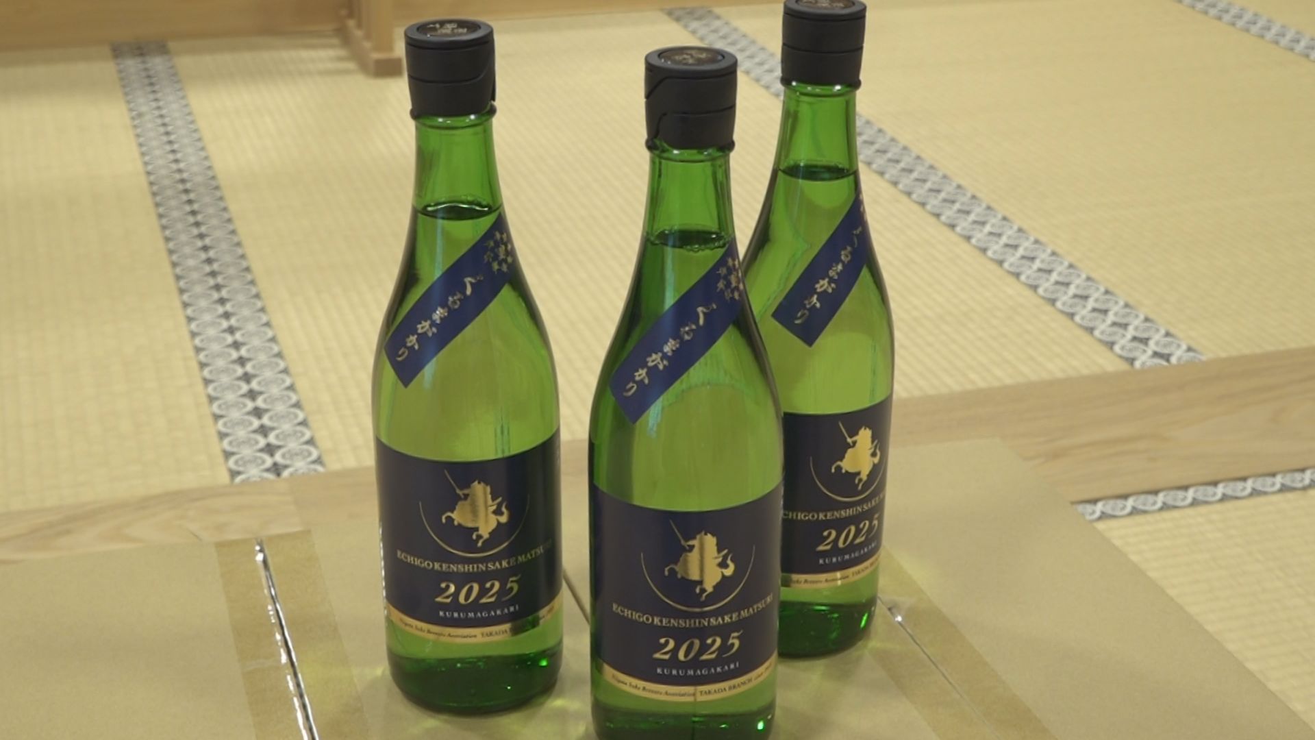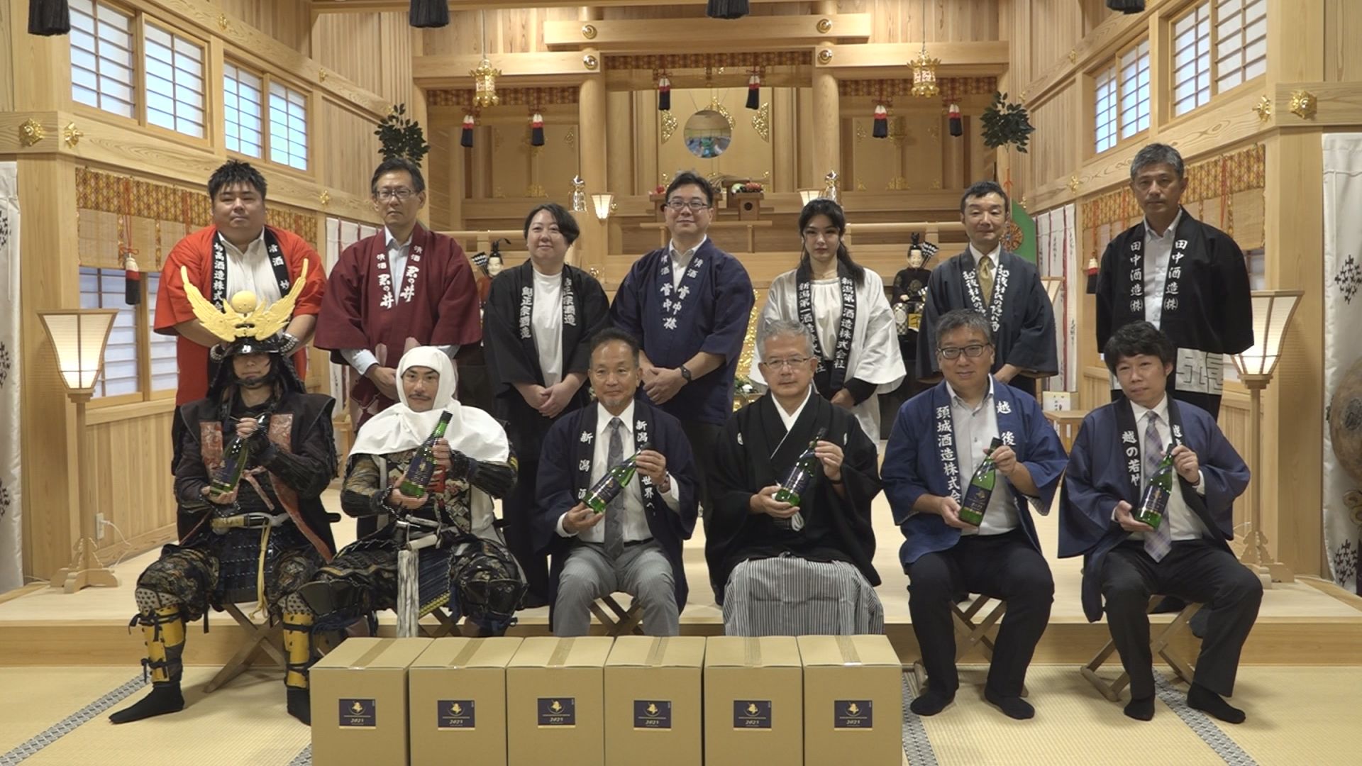 10月18日(土)19日(日)の2日間、上越市の高田本町商店街で開かれる「越後・謙信SAKEまつり」の限定酒「車懸」が1日(水)春日神社に奉納され、関係者がイベントの成功を祈願しました。