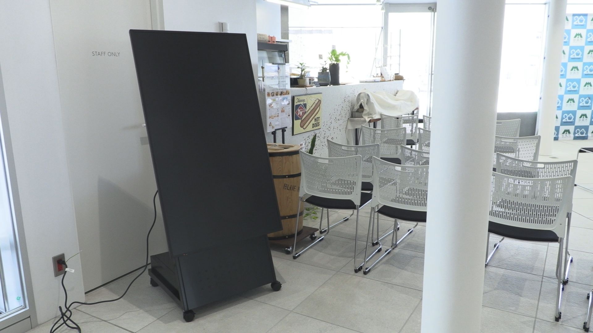 デジタルサイネージは、「まちなか+」の1階の交流スペースと2階の受付近くに設置されます。