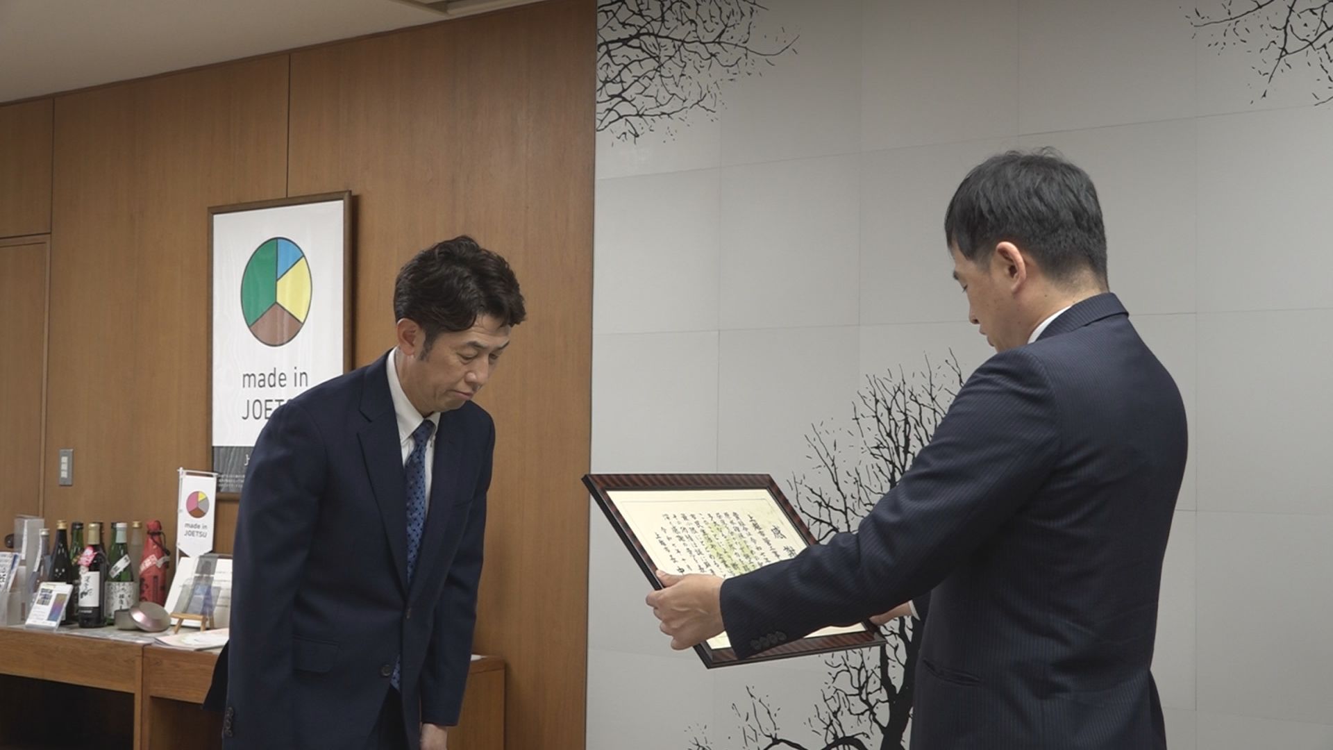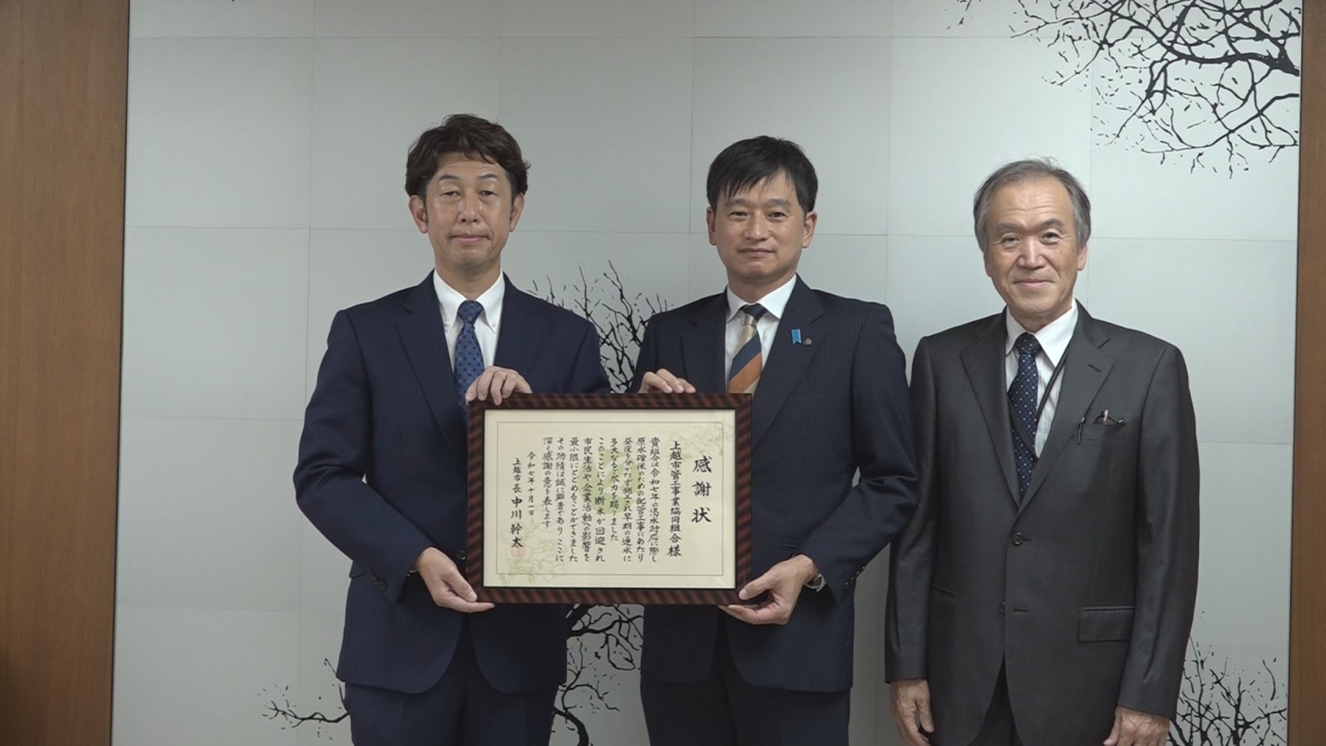 上越市の節水の呼びかけが解除されてからおよそ1か月。今年の夏、水不足になった上越市の水道水を確保するため、昼夜を問わず配管工事をした上越市管工事業協同組合に中川市長から1日(水)に感謝状が贈られました。