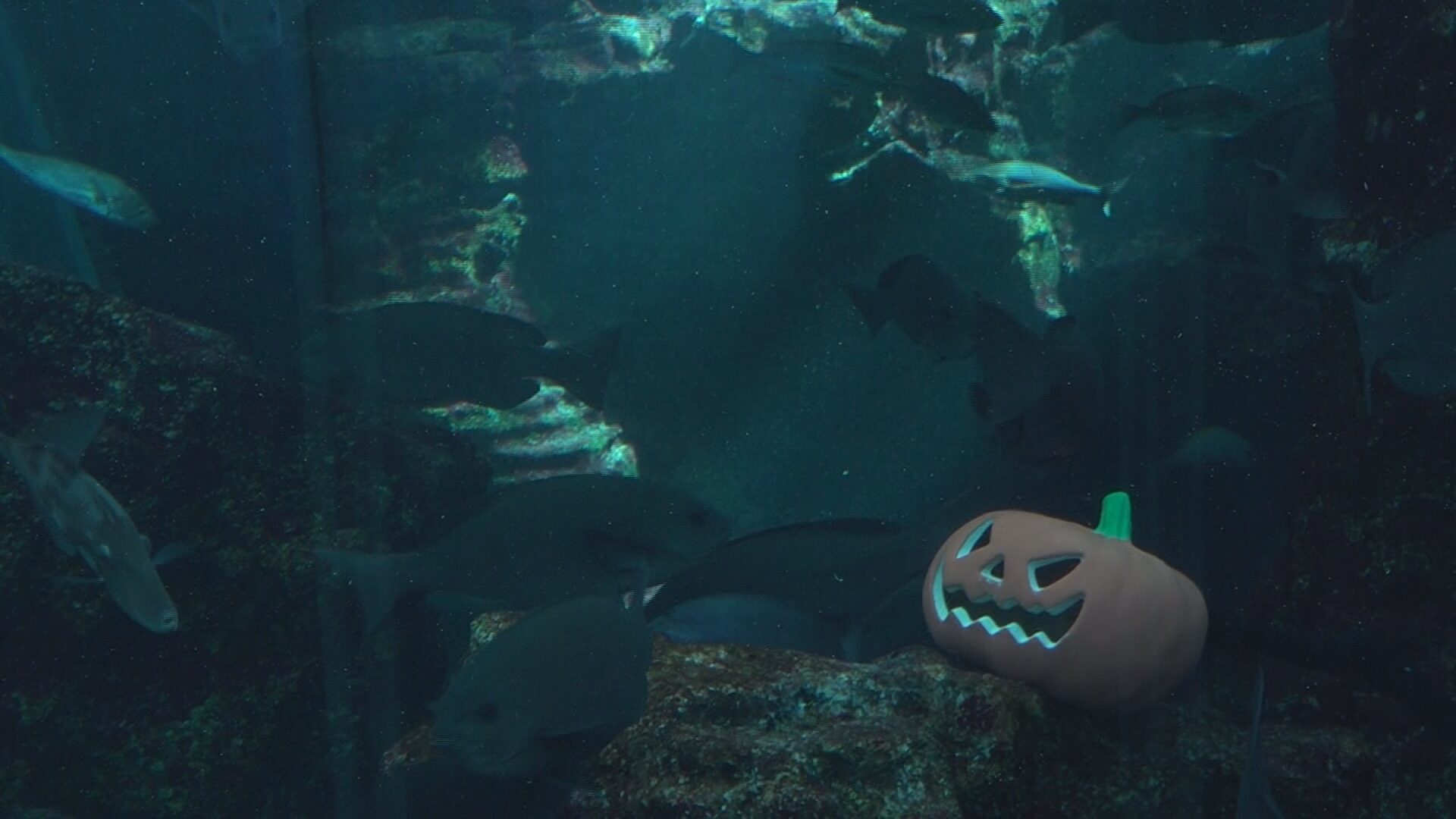 大水槽ではカボチャに扮したダイバーが登場し、エサを与えるようすが期間中の土日祝日などに限り見ることができます。