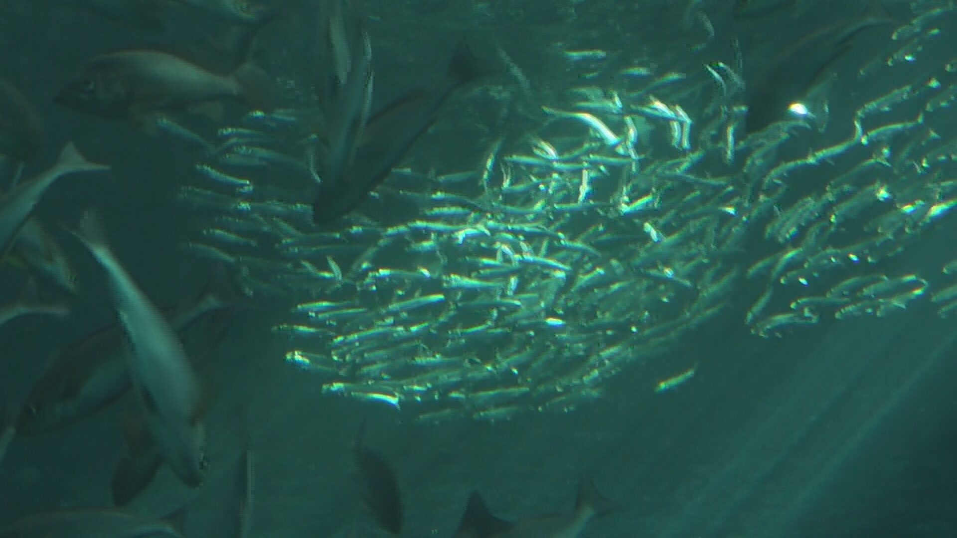 またマイワシの群れがハロウィンをテーマにした音楽に合わせて泳ぎます。