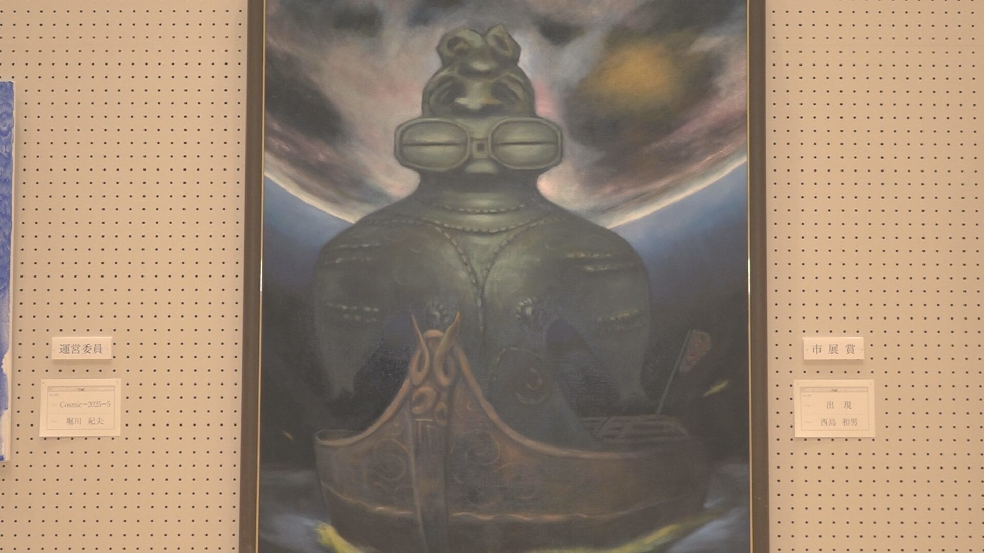 これは洋画・版画部門で市展賞を受賞した西島和男さんの作品「出現」です。