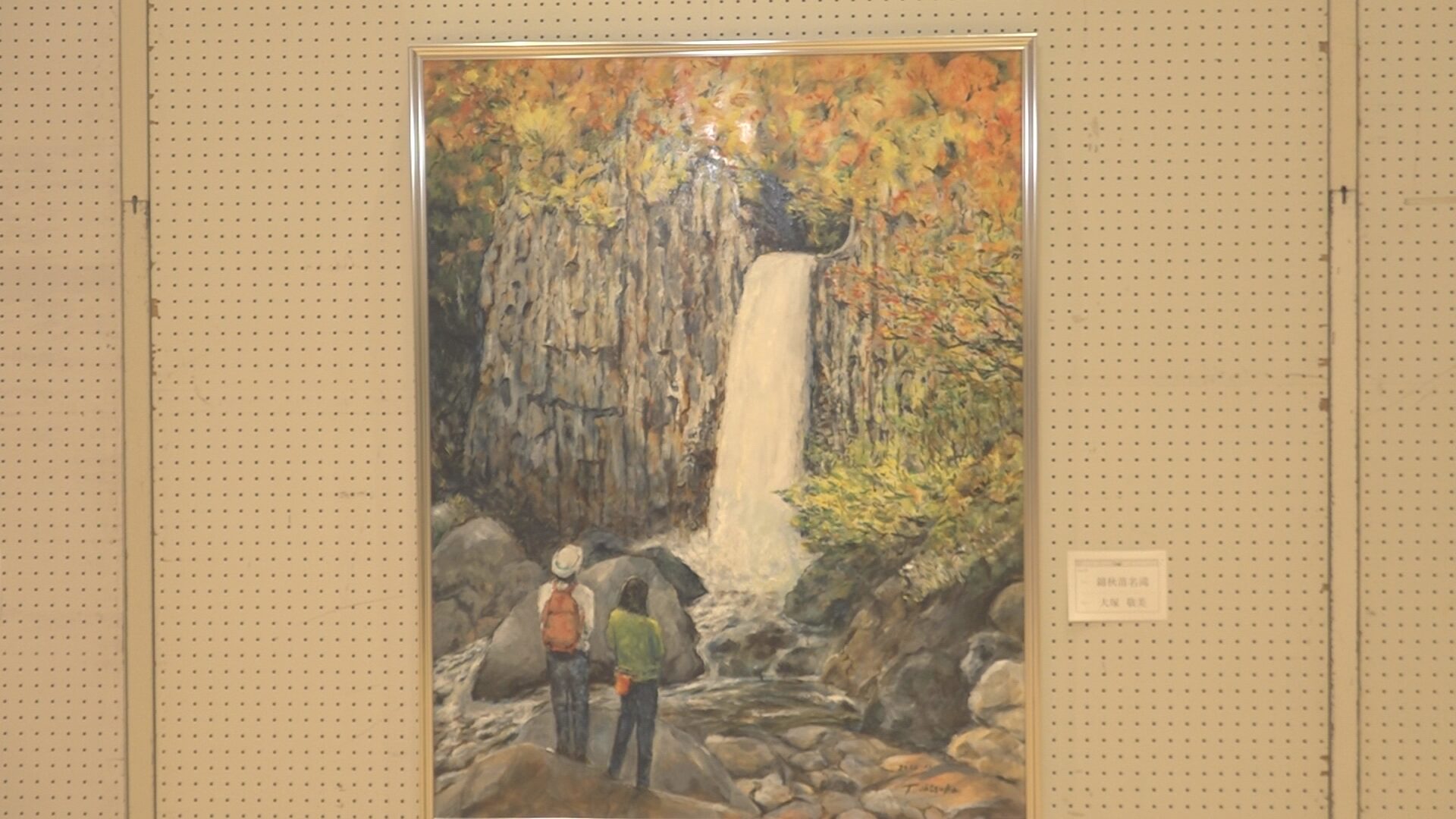 「昨年の11月に苗名滝に行って描いた。遠近法を出すのが苦労した。ぜひ見に来てほしい。」