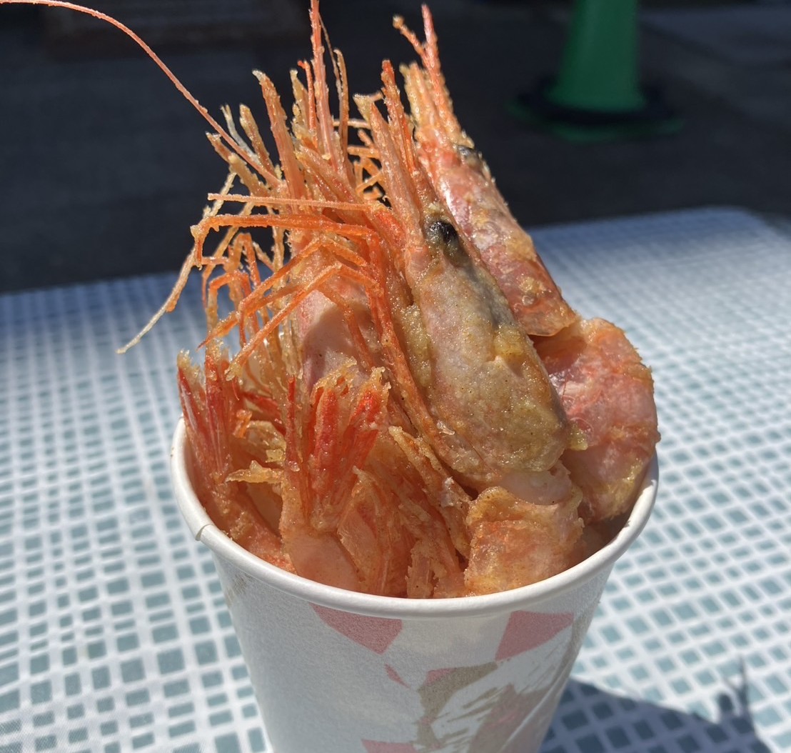 今回の祭りでは、名立漁港から水揚げしたばかりの名立産100%甘エビを使ったアレンジメニューが多数登場。港から直送された甘エビは、刺身はもちろん、丼、炙りなど、どんな調理方法にもあい、その旨みが際立ちます。