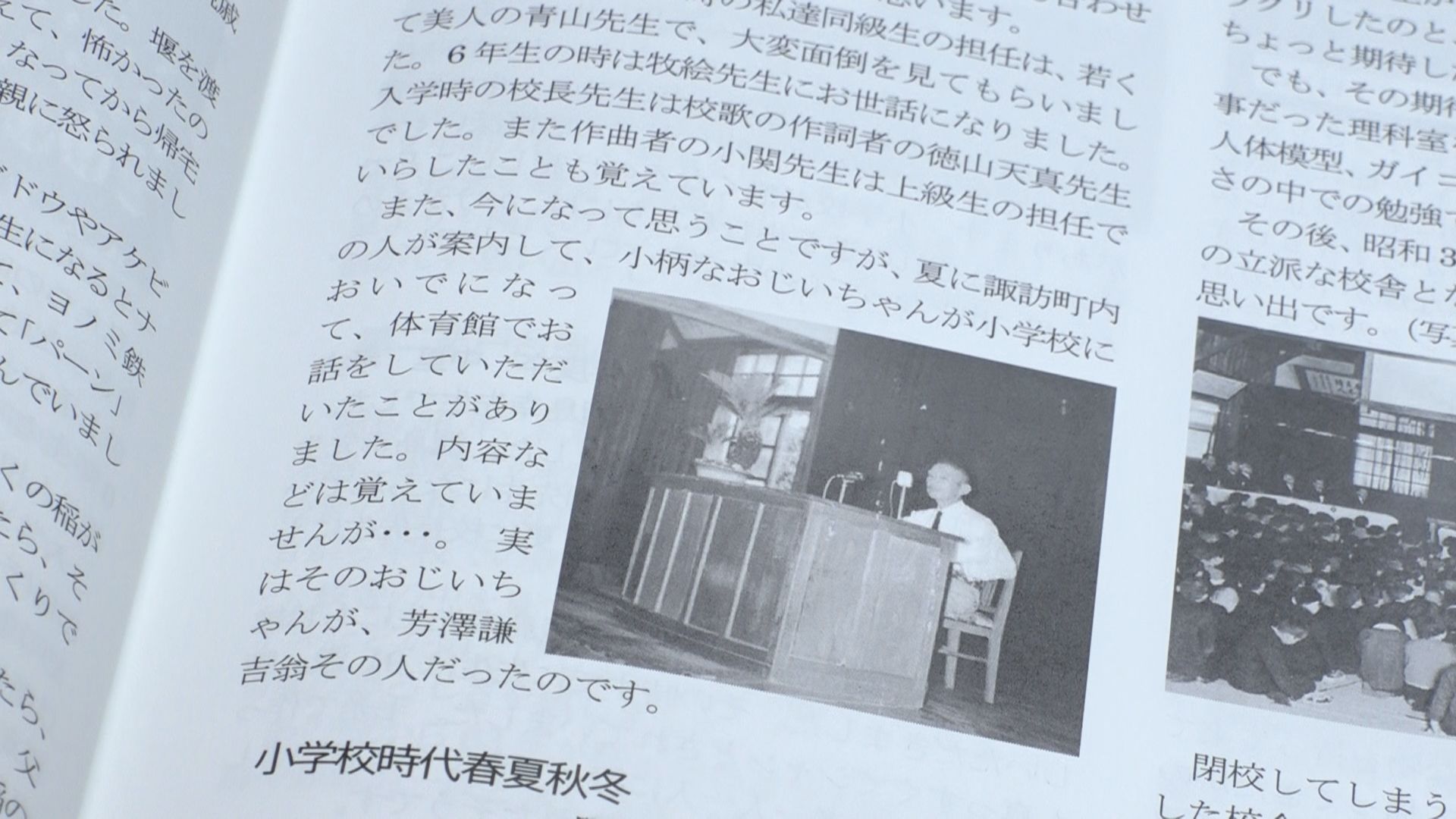 「子どもたちも諏訪はいいところだと話している。諏訪に対しての思い入れがある。校舎は残っているが、子どもたちがいなくなり寂しくなった。思い出が文集に詰まっている」