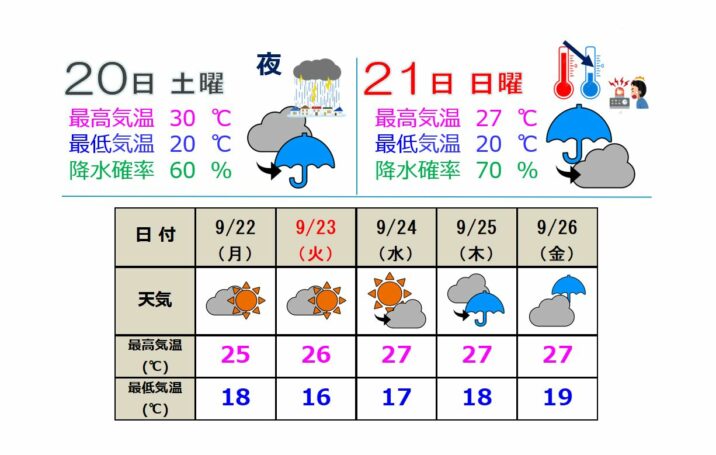 ・最高気温は20度に届かず、上がっても10月下旬並みの19度予想