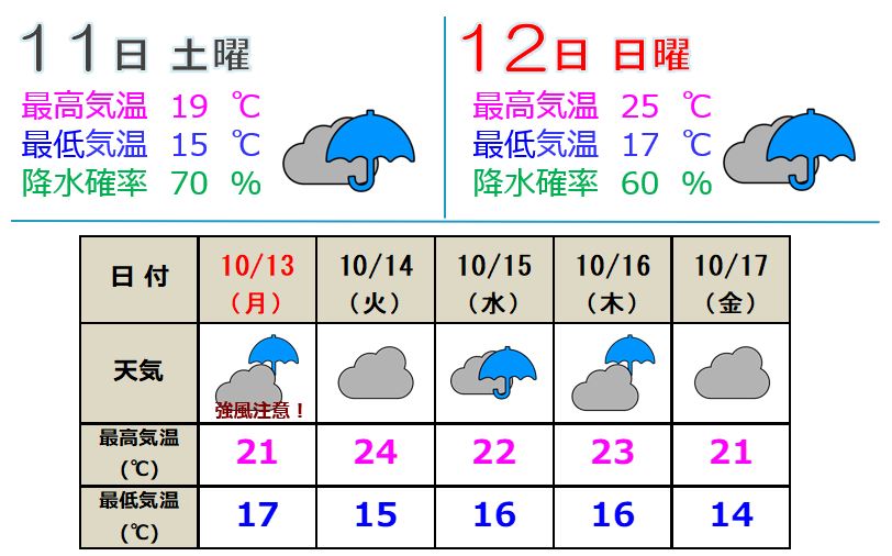 この3連休、上越地方は残念ながら雨雲優勢の日が続きそうです。11日(土)は気温もぐっと下がり、肌寒い体感になりそうです。