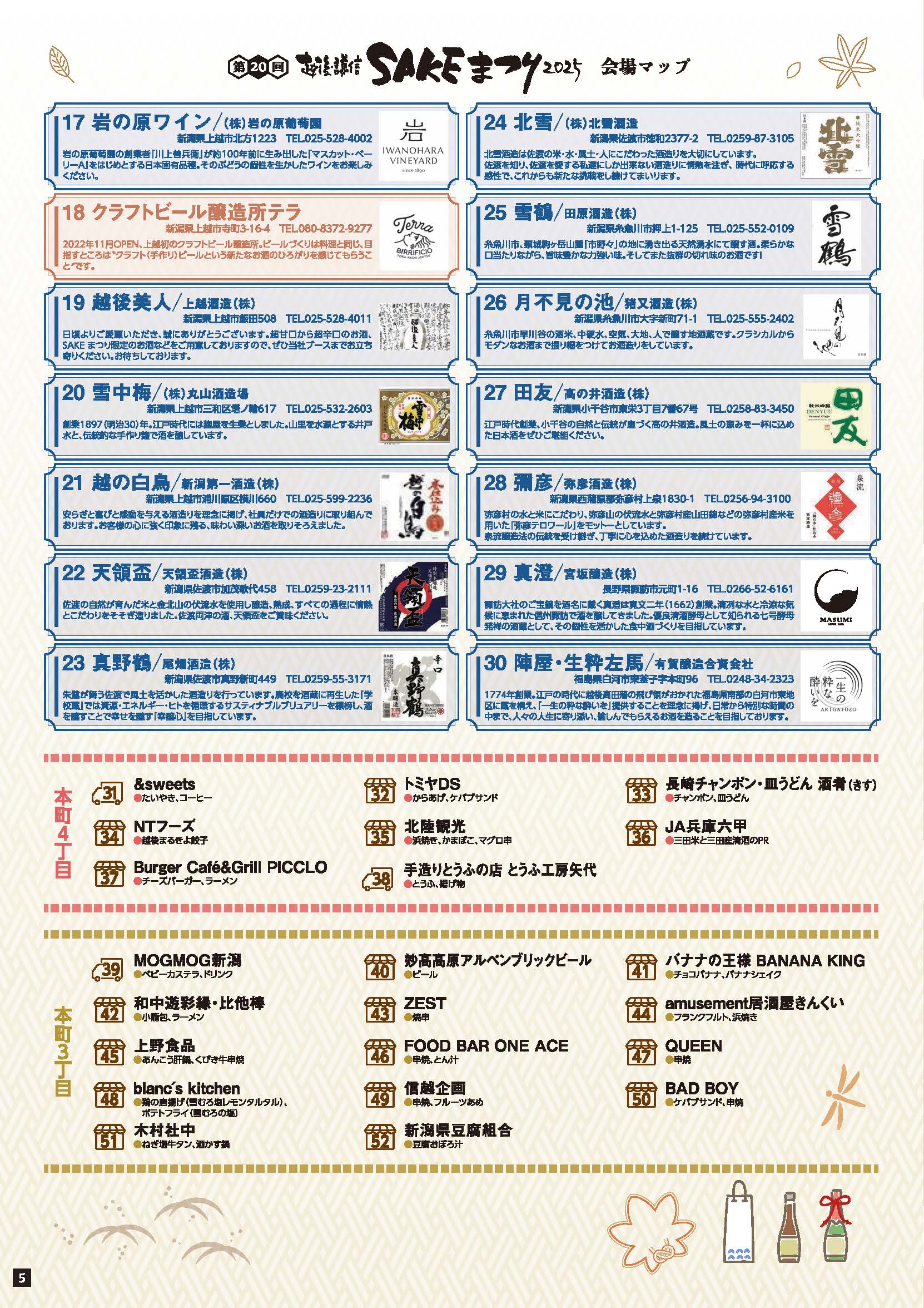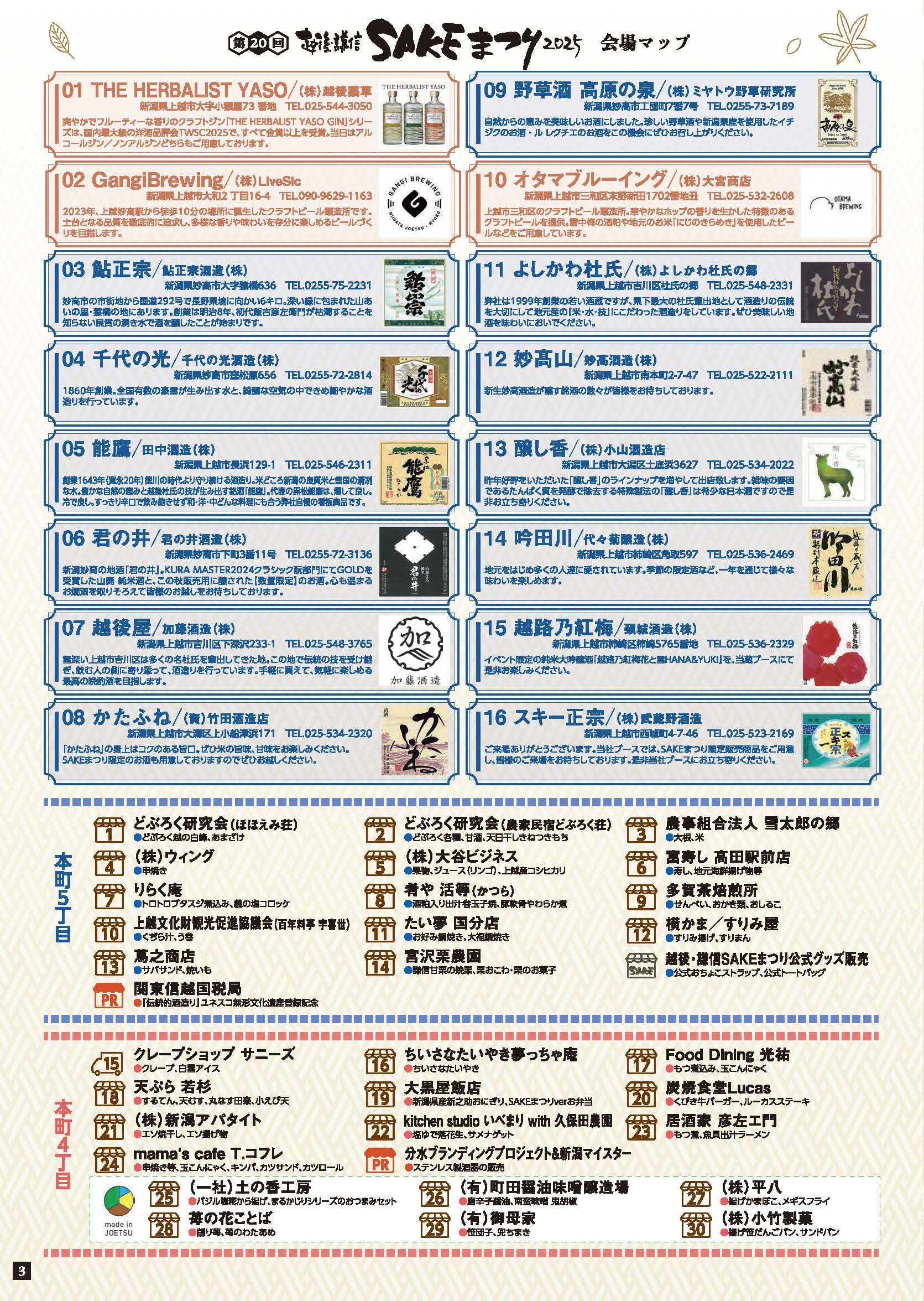 越後・謙信SAKEまつりは毎年、高田本町商店街を歩行者天国にして行われる上越妙高地域の秋の一大イベントです。上越地域の蔵元のほかに、地域外からゲスト蔵元を招き、日本酒はもちろん、ワイン、クラフトビール、どぶろくなどの「SAKE」を一堂に集め、酒づくり文化を紹介するイベントです。今年は試飲ができる26の酒ブースのほか、50の飲食や物販ブースが並びます。また、本町3・4・5丁目の店前出店では地元の美味しいグルメが26店舗並びます。