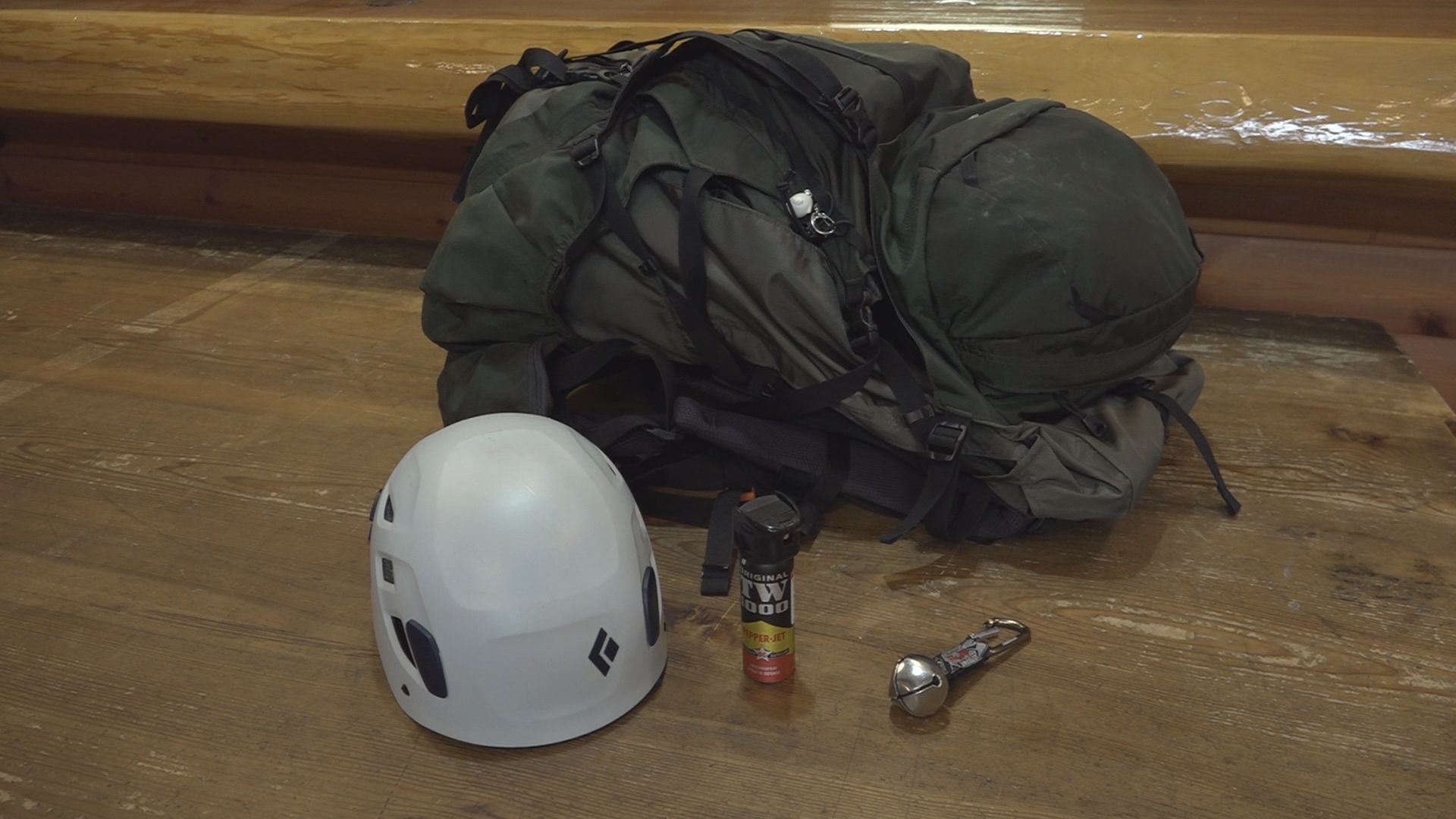 「クマに出会った際は焦らず落ち着いて後ずさりしていくのが重要。背中を向けて逃げてしまうとクマも驚いているので反射的に追いかける。クマが人間を攻撃するとき一番狙う場所は、首から上なのでヘルメットを着けて山に入るのが良い」