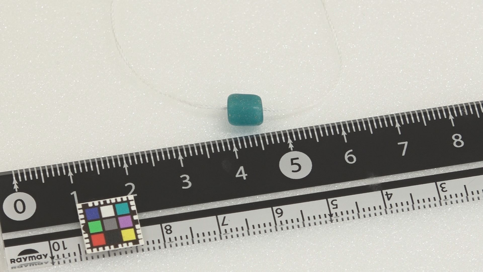 青緑色で長さおよそ6ミリ、直径はおよそ5ミリです。