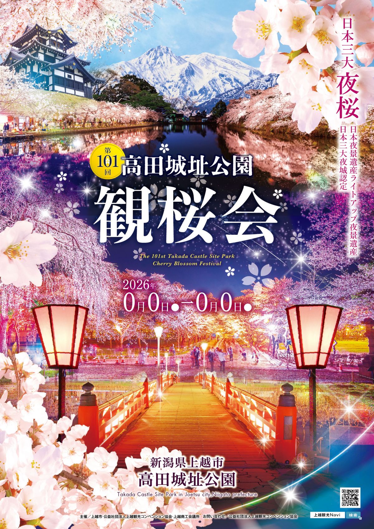 来年の春に開催される第101回高田城址公園観桜会のポスターと会期が決まりました。ここ数年の開花状況から5年ぶりに4月に入ってからの開催に決まりました。