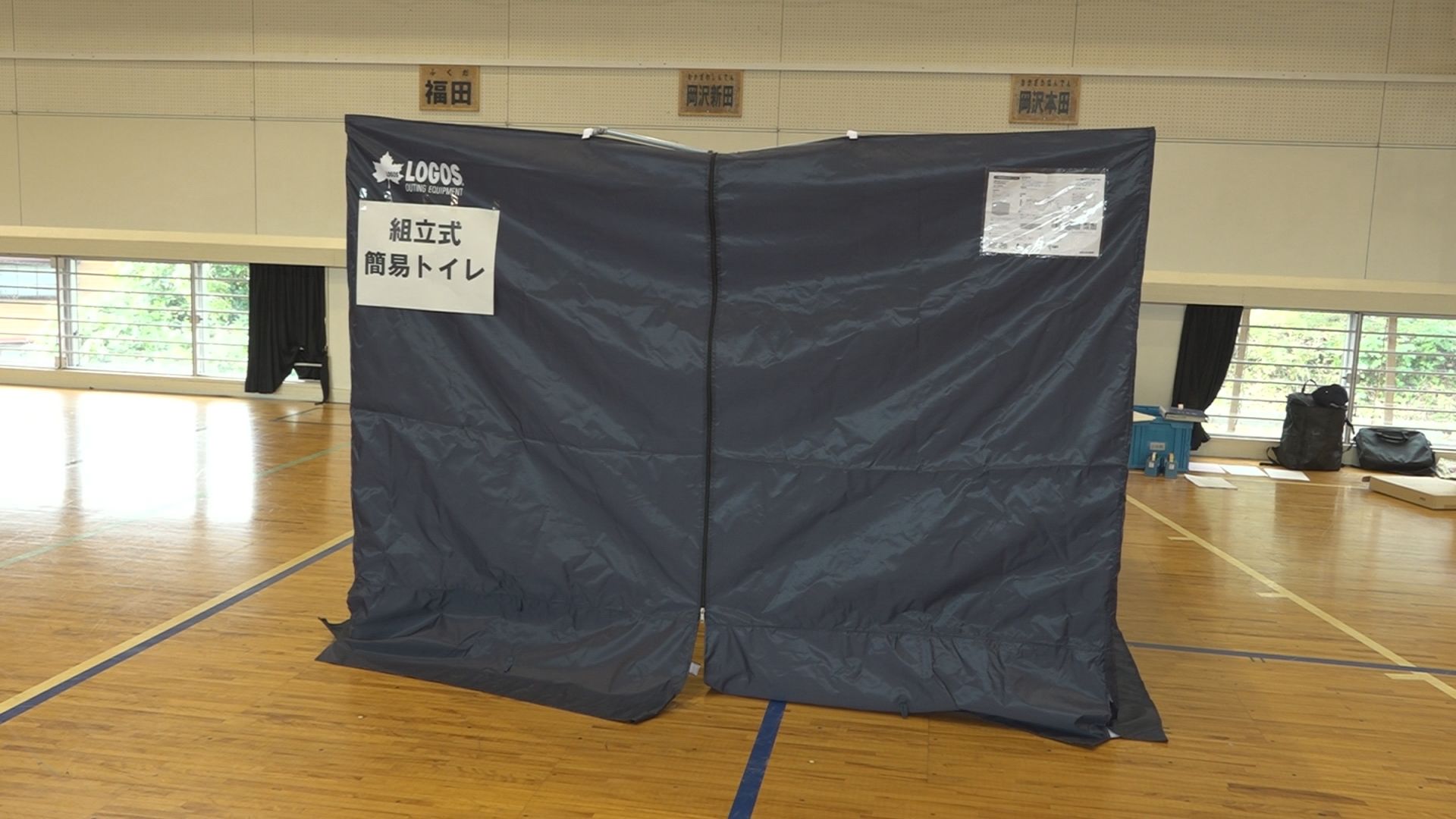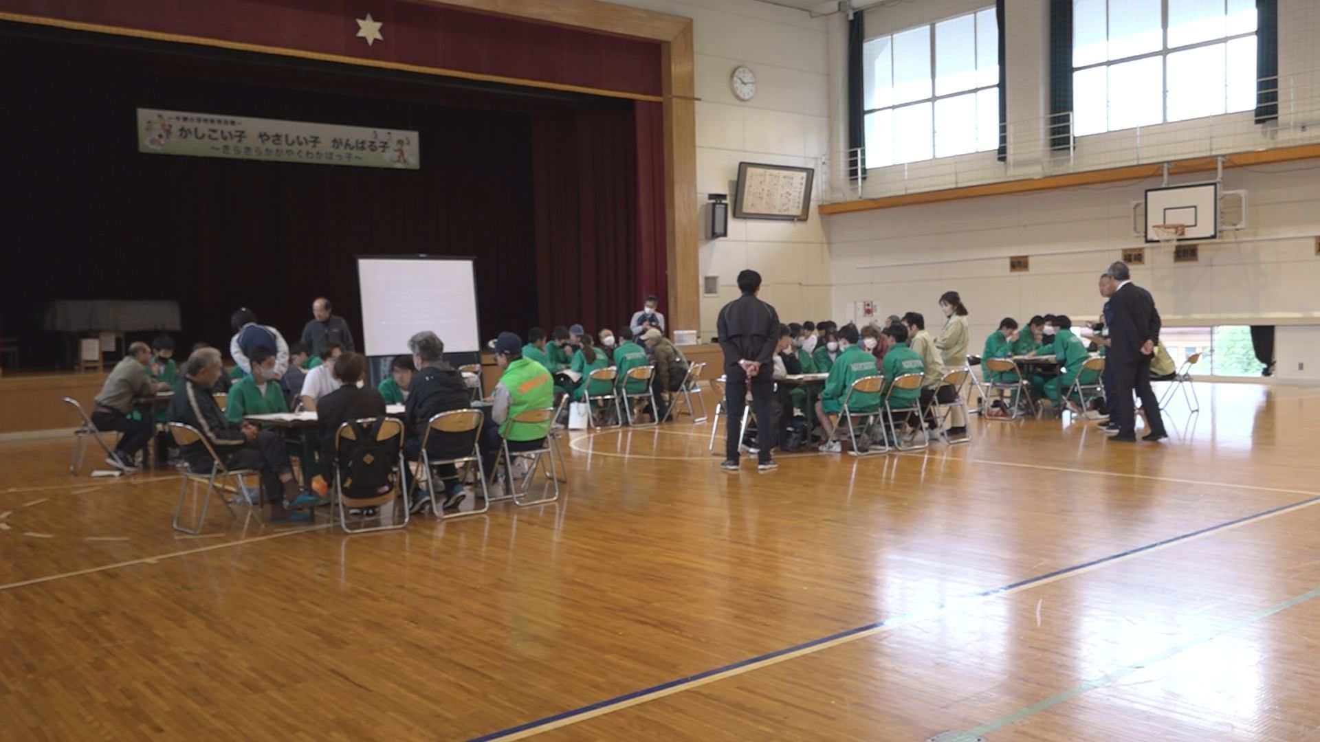 訓練は、中郷区内の指定避難所5か所で毎年、順番に行なわれています。今年の会場は上越市立中郷小学校の体育館です。