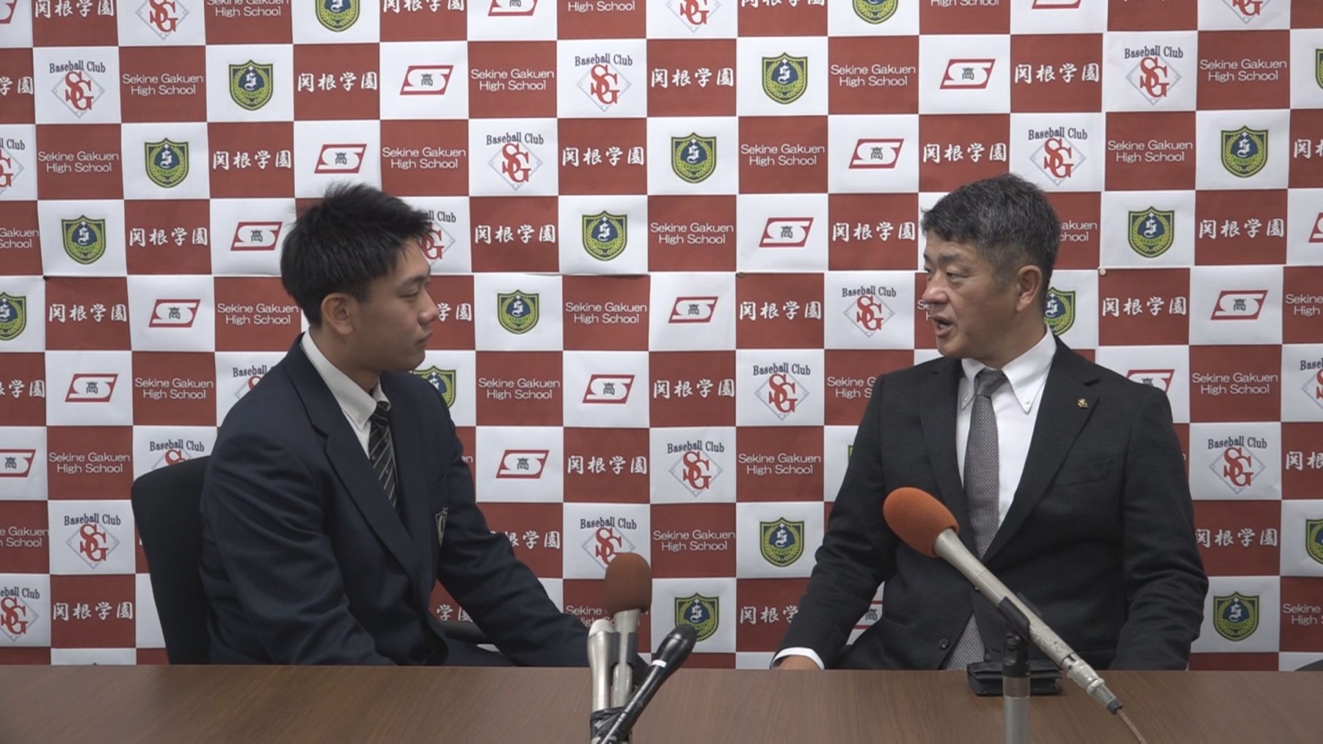 10月23日(木)に行われたプロ野球の「ドラフト会議」で福岡ソフトバンクホークスから育成枠1位の指名をうけた関根学園高校野球部3年の池田栞太さんのもとに30日(木)、球団のスカウト担当者が訪れ挨拶を交わしました。
