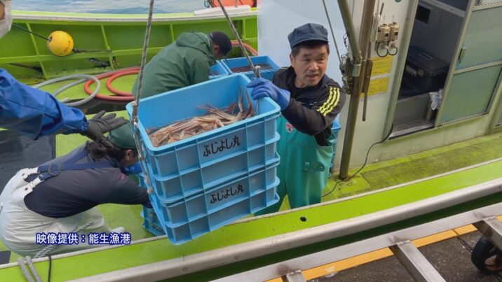 漁は能生漁港から3キロほど離れた沖合、水深およそ300メートルの海底で底引きで行います。上越漁業協同組合によりますと、初日の漁獲量はおよそ1600キロで、去年の初日よりも600キロほど増えました。
