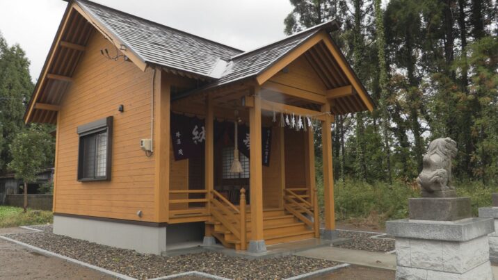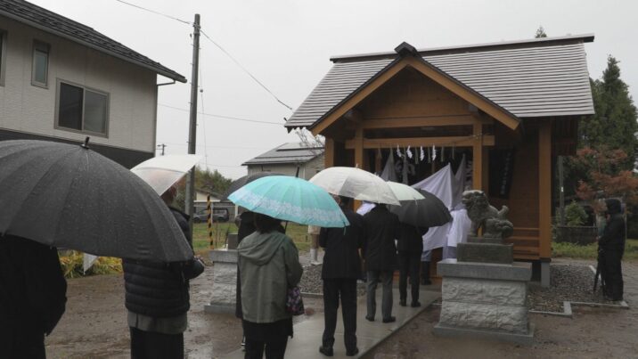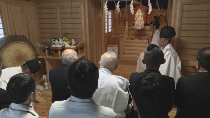 ご神体が納められた後、恒例の秋祭りの神事も執り行われ、参列者は真新しい木の香りが漂うなかで、静かに手を合わせていました。