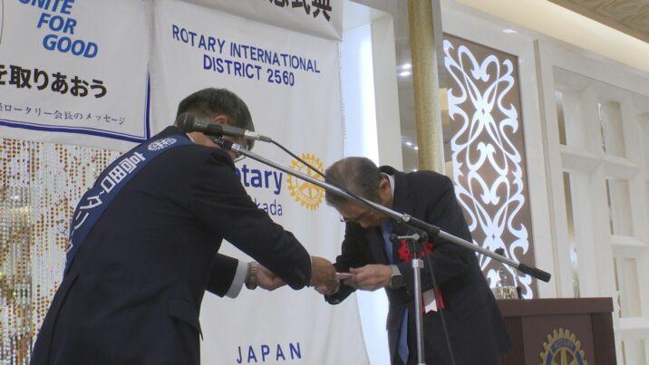 式典には会員のほか、ほかの地域のロータリークラブの関係者などあわせて300人ほどが出席しました。