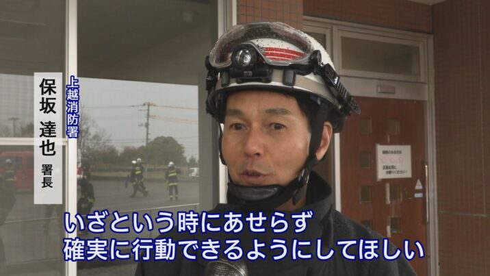 介護を必要とする人が利用する施設で火災を想定した消防訓練が11日(火)に上越市五智で行われ、参加者が消火や救助の手順を確認しました。