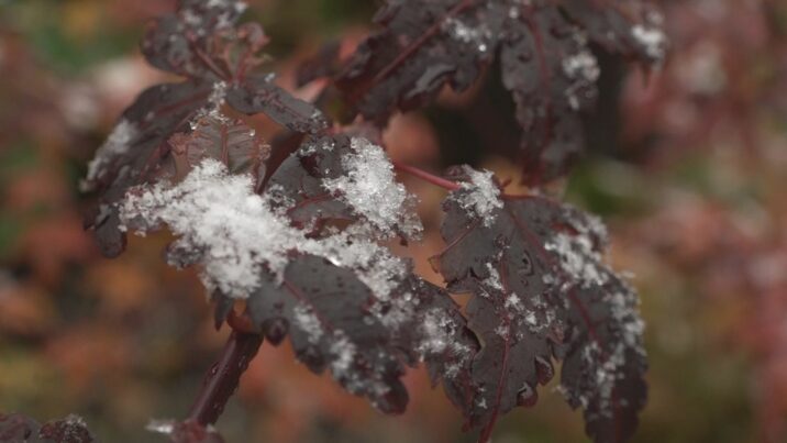 18日(火)の上越地方は冬型の気圧配置となり、妙高市関山では最低気温が1.1℃と、今シーズン最も低くなりました。気温の低下に伴い、妙高市赤倉やいもり池周辺では、今シーズン初めての雪が降りました。