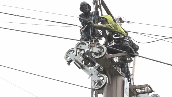 18日(火)は冷たい雨が降るなか、専門業者がリフトのロープを支える器具を10年ぶりに取り替えました。重さはひとつ60キロあり、作業員5人が慎重に作業を進めていました。