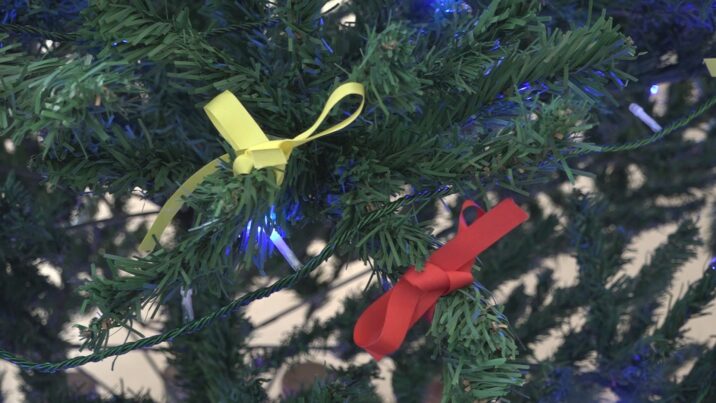 29回目の今年は、ツリーと募金箱が上越市内の障がい者福祉施設や事業所など61か所に設置されました。ツリーには募金した人が「愛情」を表す赤いリボンか、「希望」を表す黄色いリボンを結びます。