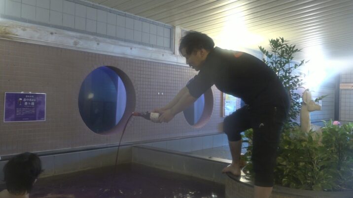 10年ほど前から、毎年秋にお湯に本物のワインを入れる「ワイン風呂」を提供しています。