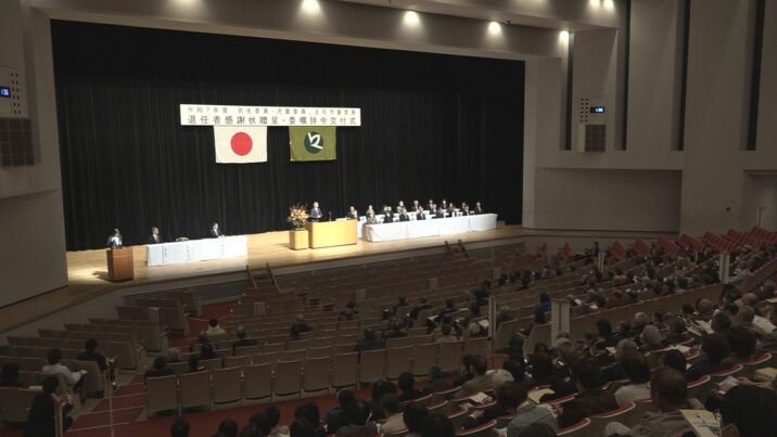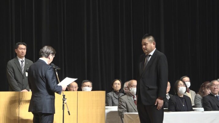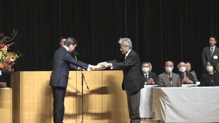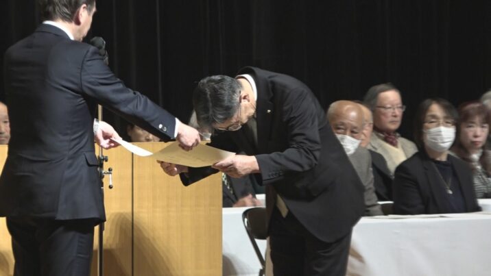 1 日(月)は、退任者の代表が小菅市長から感謝状を受け取りました。