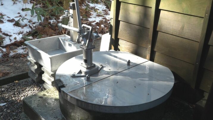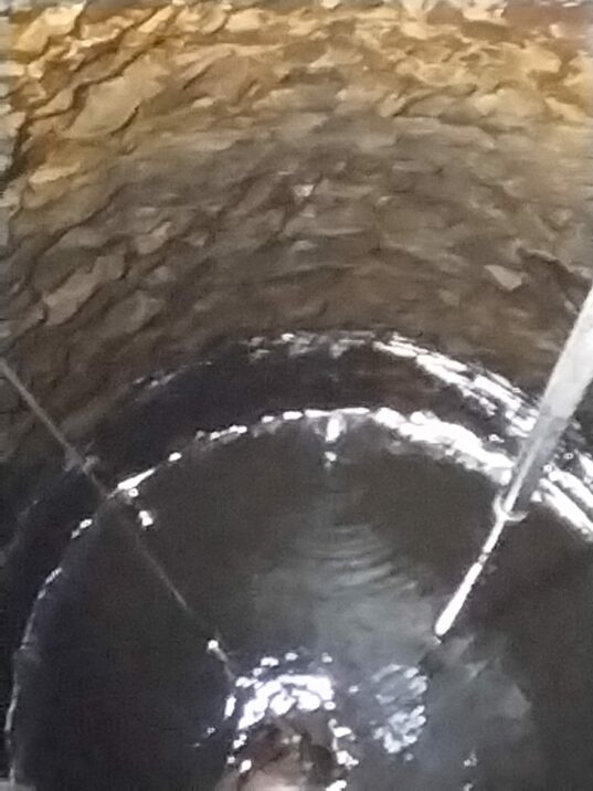 井戸の深さは11メートルあります。6月初旬から2か月ほどかけて工事が行われ、水をくみ上げるポンプが設置されました。