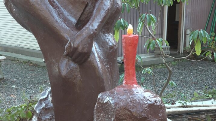 復元は妙高市出身の彫刻家、古川 敏郎 さんが手掛け、作品をイメージしやすいよう新たに赤いろうそくが建てられました。