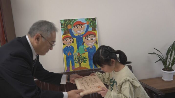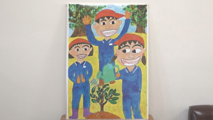 植樹や森林の保護などを呼びかける「にいがた緑の百年物語 県民運動」の国土緑化運動・育樹運動ポスターコンクールがこのほど行われ、上越市立板倉小学校2年生の松田果英さんの作品「大きくなあれ」が最高賞の「優秀賞」に輝きました。