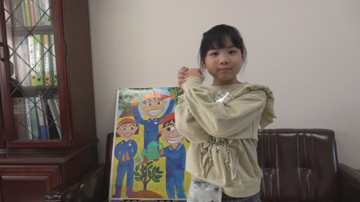 植樹や森林の保護などを呼びかける「にいがた緑の百年物語 県民運動」の国土緑化運動・育樹運動ポスターコンクールがこのほど行われ、上越市立板倉小学校2年生の松田果英さんの作品「大きくなあれ」が最高賞の「優秀賞」に輝きました。
