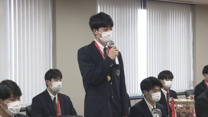 9日は選手一人ひとりが抱負を発表し「支えてくれた家族やOBに恩返ししたい」「最高のパフォーマンスで感動させる試合をしたい」などと決意を表しました。