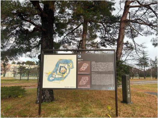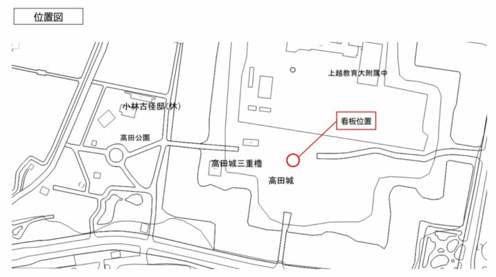 上越市によりますと、落書をされたのは、高田城址公園内の三重櫓管理棟の東側に設置されている高田城跡遺構解説看板の裏面です。