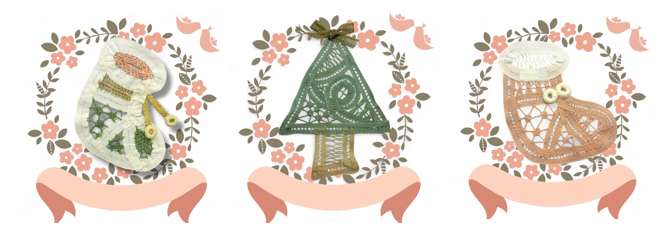 期間中の土曜、日曜は制作体験も可能です。今年は去年人気だったクリスマスツリーや靴下のほか、バラをモチーフにしたハンカチの制作体験もできます。体験はそれぞれ料金がかかり、希望者が多い場合は体験できない場合もあります。事前に予約した方が優先となりますので、興味のある方は吉田バテンレースまたは旧今井染物屋へ電話で予約をしてください。