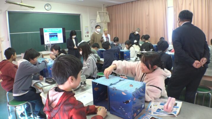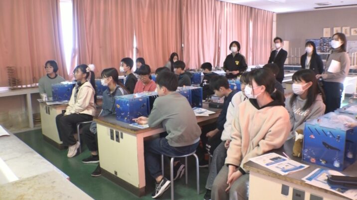 出前授業は、エネルギー資源として注目されているメタンハイドレートが、上越沖の海底に確認されていることから、子どもたちにも身近に感じてもらおうと、県が上越市や糸魚川市の小学校で行っています。