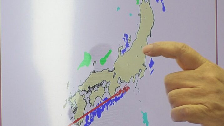 「(2009年のデータ)ここの青い印のところ。メタンハイドレートがたくさん埋まっているという印。2009年~2025年まで16年くらい調査した。もっとたくさんあることが今わかっている」