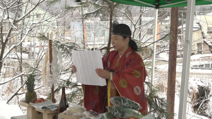 安全祈願祭は、毎年12月15日に妙高ツーリズムマネジメントと地元の妙高スキークラブが行っています。観光協会や市内のスキー場関係者などおよそ50人が集まり、今シーズンの無事故を祈りました。