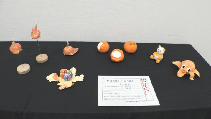 そのほか、上越総合技術高校の5人の生徒による立体作品もあります。「もしも、こんなみかんがあったら…」と想像して新種のミカンを紙粘土で制作しました。