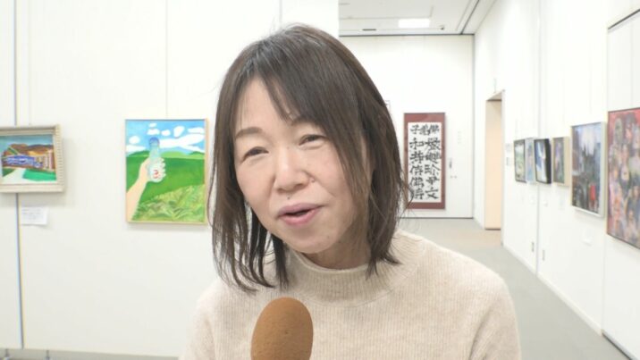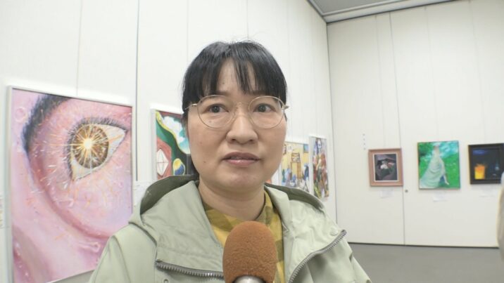 「地元なので高校生の作品を見に結構前から来ている。発想が大人と違う。絵や立体的な作品も個性的でおもしろい」