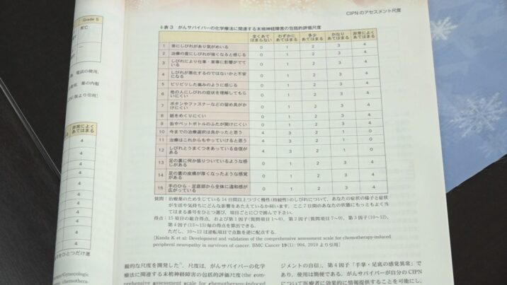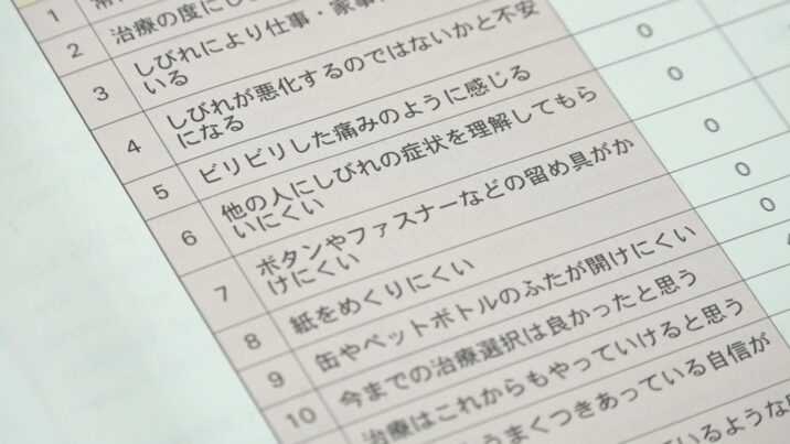 神田学長は、患者と医療者が症状や心理状態を共有するため、しびれの程度や治療に対する気持ち、周りの人の病気への理解など、15項目にわたって数値で測定する尺度を作りました。患者がこれを活用した結果、医療者はしびれの程度や治療への気持ちを総合的に把握できるようになり、患者と医療者の隔たりが少なくなったということです。