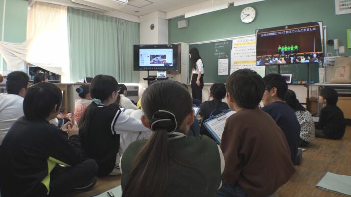 今回5年ぶりに交流することになり、板倉小学校と西小学校の5年生合わせて64人がオンラインでつながりました。板倉小学校はコメづくりを通じて学んだことを、西小学校はSDGsの17の課題について学んだことを、画像や動画を使いながらそれぞれ発表しあいました。