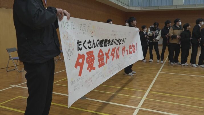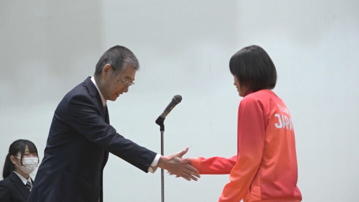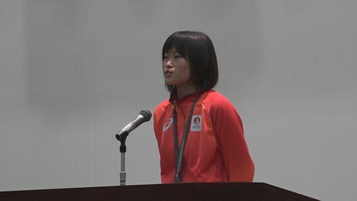 18日(木)岡田選手が通う、上越高校で報告会が行われ、金メダルを獲得した喜びを語りました。