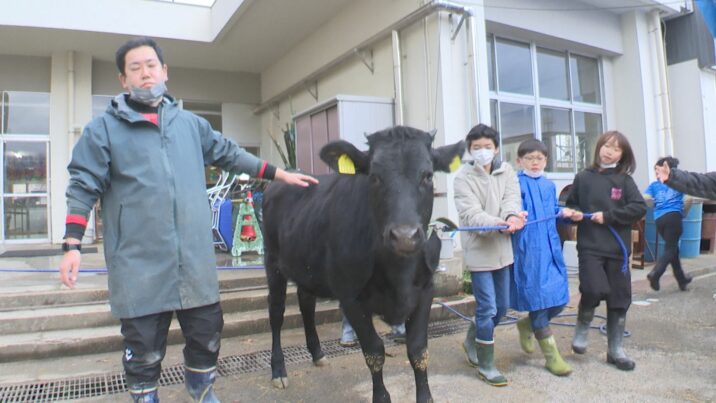 大手町小学校の5年生40人は、食と命の大切さを学ぼうと頸城区の荻谷畜産から食用のウシを借り、「アオ」と名付け、6月から学校で育ててきました。ウシは来年2月、競りかけられることが決まっています。