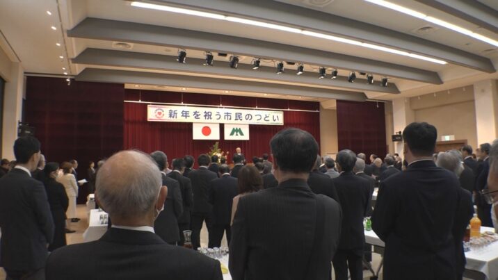 この後、市民のつどいが開かれ、市内の事業所やNPO団体などおよそ300人が新年のあいさつを交わしました。