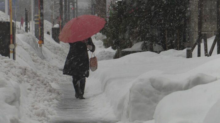8日(木)の上越地方は冬型の気圧配置の影響で朝からまとまった雪になりました。午前9時の各地の積雪は、上越市安塚で87センチ 妙高市関山で58センチ 上越市高田で47センチでした。