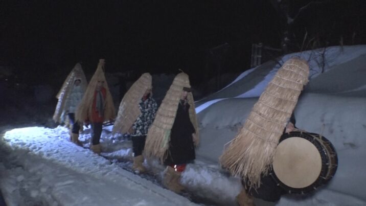 上越市の無形文化財で450年以上前から続く西横山集落の小正月行事が始まりました。14日(水)の夜は「鳥追い」が行われ、集落に子どもたちの元気な声が響きわたりました。