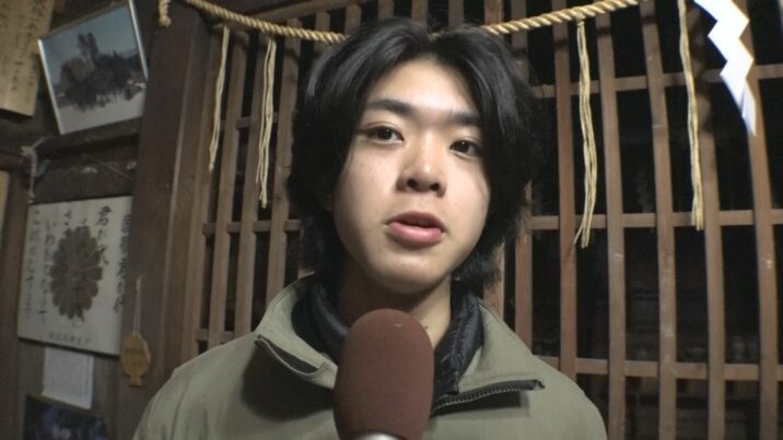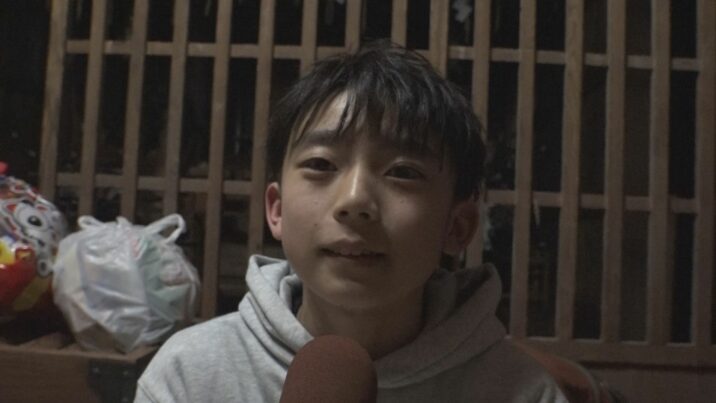 毎年、年長の子どもがまとめ役の親方を務め、太鼓を叩くのがしきたりです。今年は白山神社の岩片克己宮司の孫で、去年の春に栃木から集落に戻ってきた潮陵中学校1年生の岩片陽さんが大役を務めました。