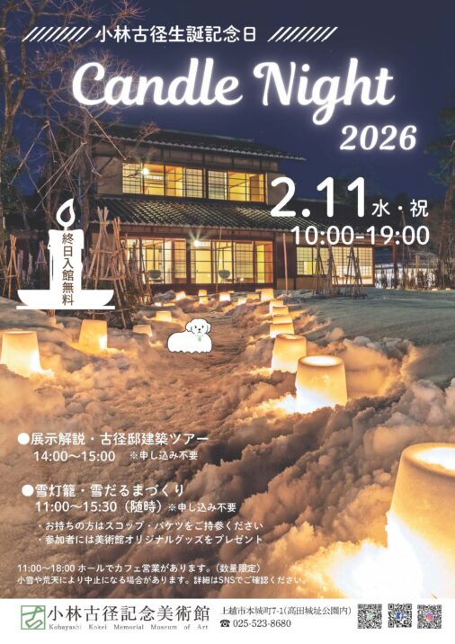 上越市出身の日本画の巨匠、小林古径の生誕を祝うイベント「キャンドルナイト」が、高田城址公園内にある小林古径記念美術館で2月11日(水・祝)に行われます。
