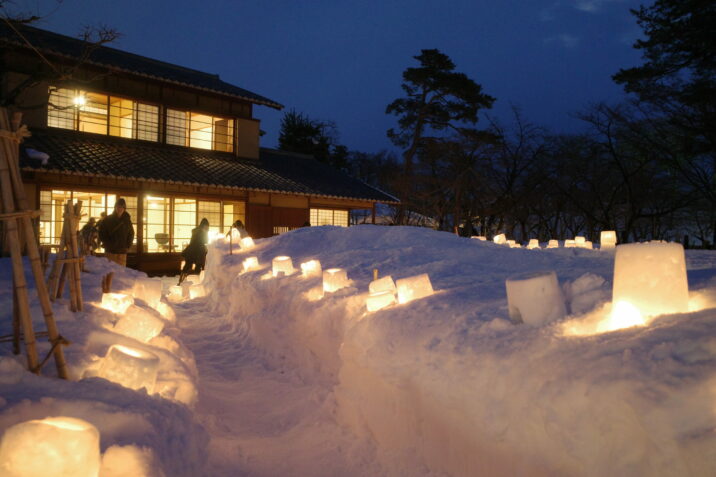 2月11日は小林古径の誕生日です。このイベントは古径生誕143年を祝い、雪灯ろうの淡い明りで日本画のような眺めを楽しんでもらおうと毎年開かれています。