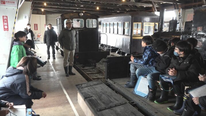 童は地域の偉人や歴史について学んでいて、見学の前には、レールパークを管理しているNPO法人「くびきのお宝のこす会」の西山義則会長から、鉄道の歴史や創業者などについて学んできました。