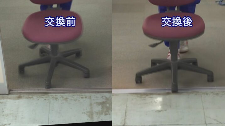 名立中学校の2年生16人は、パラスポーツの出前授業などを通じて、共生社会について学んでいます。この日は教室などの出入り口をバリアフリーにしました。これまでドアのレールが出っ張っていたため、給食台などを運ぶ際、つっかえて不便を感じていたということです。生徒はドライバーを使ってレールを外し、平らなレールを取り付けました。これに合わせドアの車輪も調整しました。